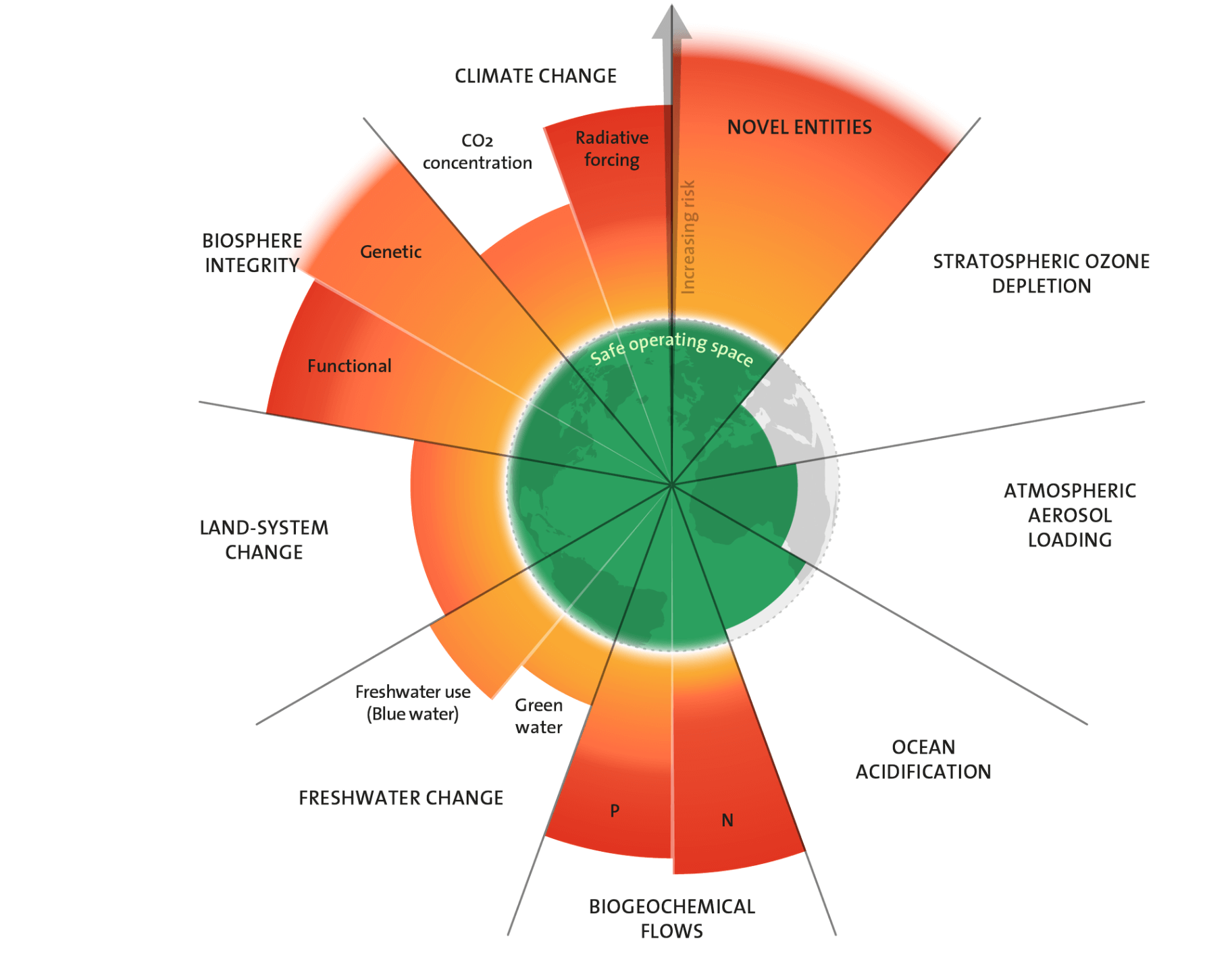 In 2023 scientists confirmed that six of nine planetary boundaries, including climate and biosphere integrity, have been breached.